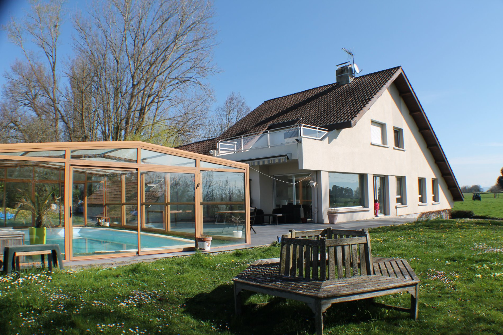 Magnifique villa à proximité de la Tour du Pin de l' A43 et de la gare. Belle situation, vue sur les montagne, pas de vis à vis, en retrait de la route, pas de nuisance sonore ou visuelle, très lumineuse. Terrain de 7300m2. Au rdc espace de vie de plus de 70m2 composé du hall d'entrée, du salon/salle à manger de la cuisine ouverte et d'un coin bureau. Cheminée double foyer fermé. Egalement au rdc 2 chambres , 1 salle de bain, 1 suite et 1 wc. A l'étage 3 chambres avec salle d'eau dont 2 donnant sur la terrasse. Accès au combles aménageables d'environ 12m2. Au sous sol, buanderie, atelier, garage, cave à vin et chaufferie. A l'extérieur grande terrasse, piscine avec abri haut télescopique. Garage double avec accès maison, combles sur garage + espace de rangement de 17,50 m2. La maison est entourée de terrains non constructibles, sans aucun vis à vis, donc tranquilité absolue. Bien disponible immédiatement, à voir rapidement.